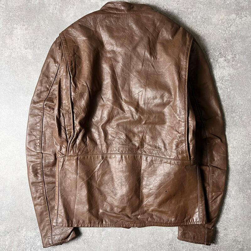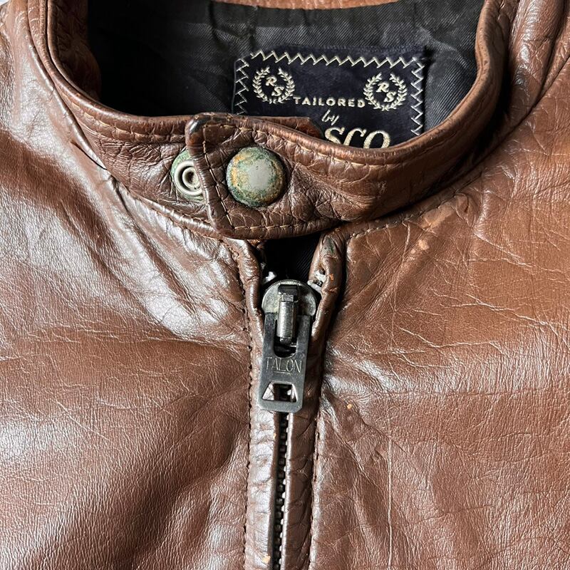 70s ARSCO サテン ライナー 本革 レザー シングル ライダース ジャケット / 70年代 アメリカ製 ビンテージ ブラウン 革ジャン