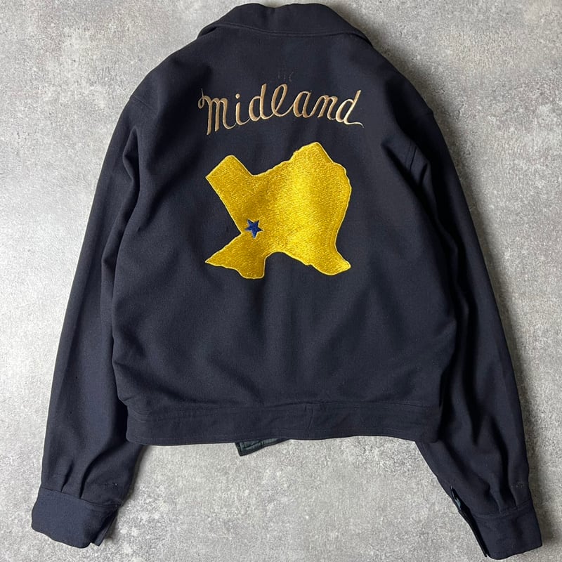 60s 70s MIDLAND 刺繍 ウール スーベニア ジャケット / 60年代 70年代 ビンテージ ネイビー ショート丈 短丈 フルジップ