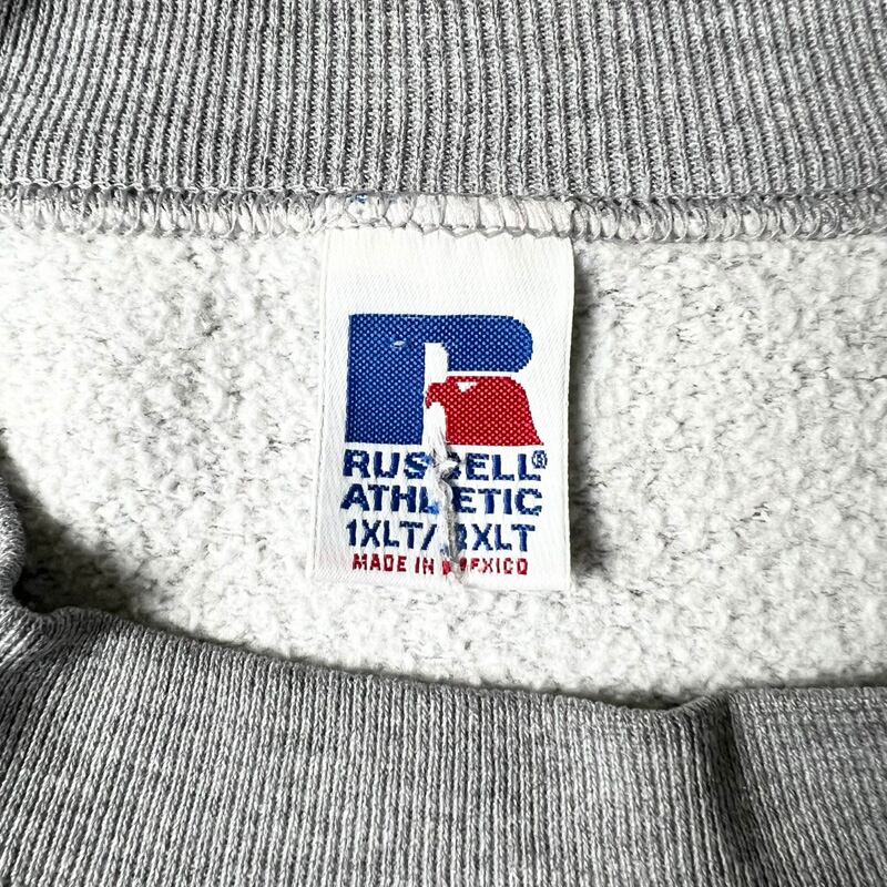 00s RUSSELL 3段 カレッジ プリント 前V スウェット トレーナー XL / 00年代 オールド ラッセル 霜降り グレー スエット