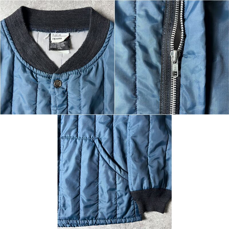 70s USA製 Sears 中綿 キルティング ナイロン ジャケット XL / 70年代 アメリカ製 ビンテージ シアーズ ブルゾン ジャンパー ショート丈 短丈