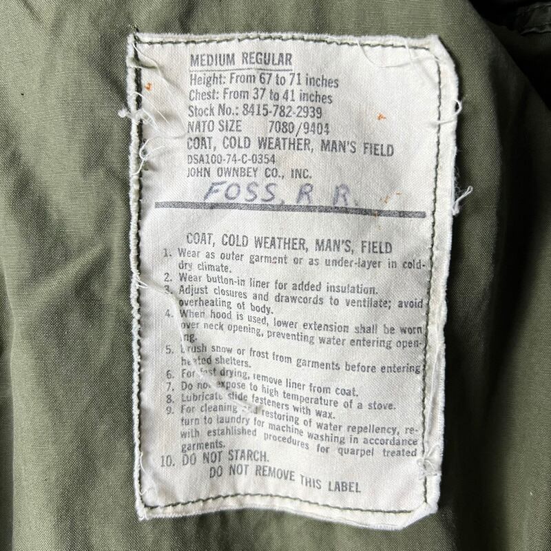 正式名称:COAT, COLD WEATHER, MAN'S FIELD