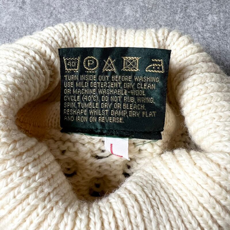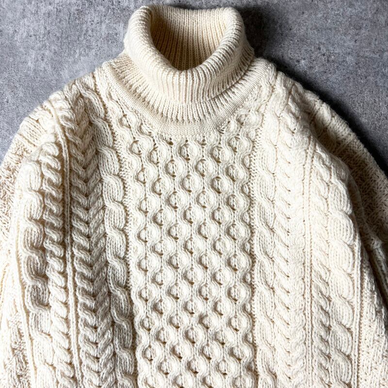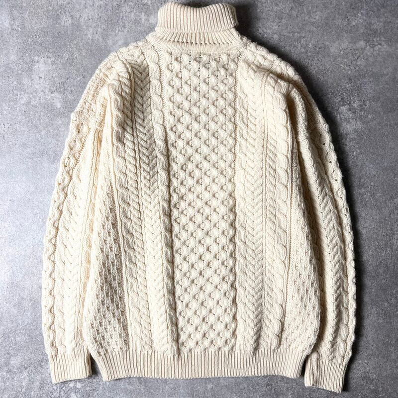アイルランド製 Carraig Donn タートルネック メリノ ウール フィッシャーマン ニット セーター L / アラン ナチュラル 生成り 無地 アランセーター