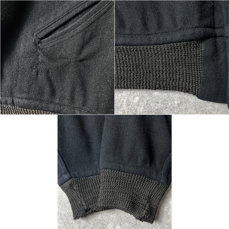 60s Unknown フットボール ワッペン 襟付き ウール スタジアム ジャンパー 46 / 60年代 ビンテージ スタジャン ブラック 黒