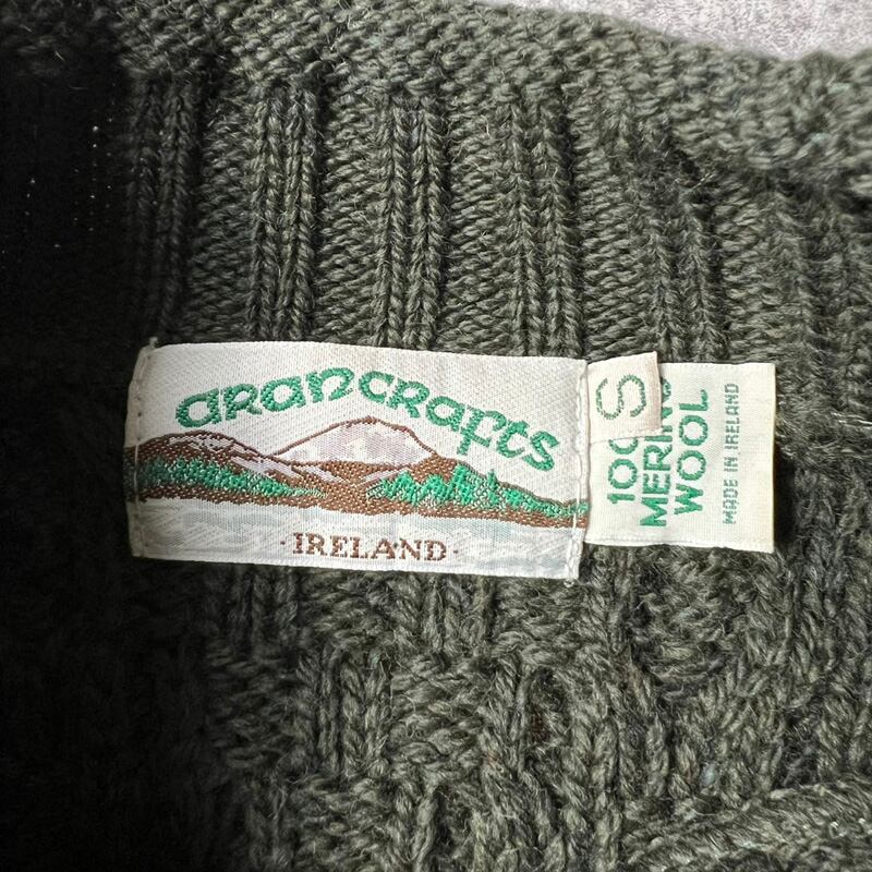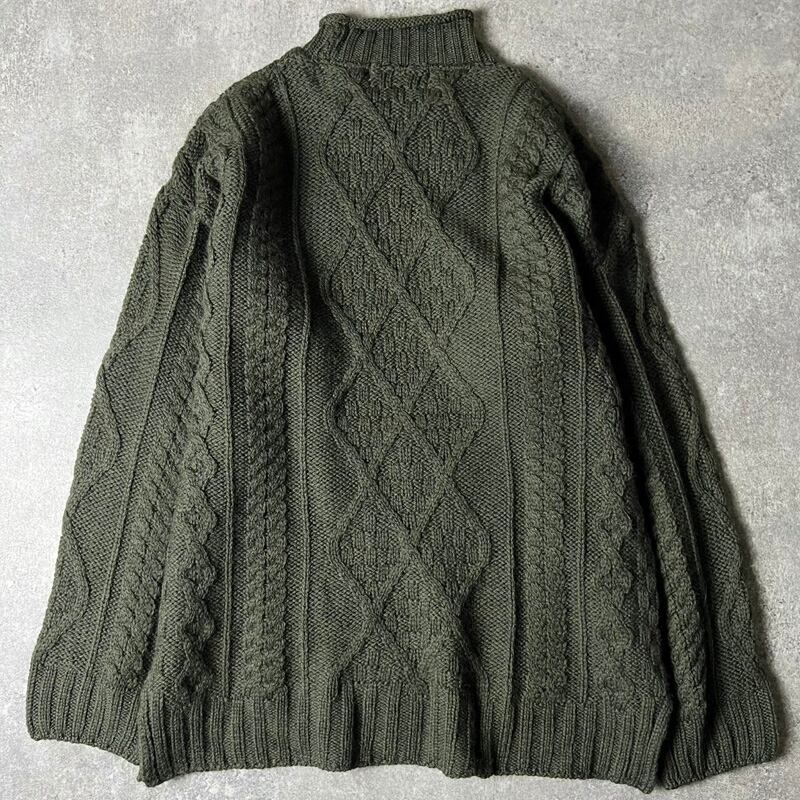 アイルランド製 aran crafts モックネック メリノ ウール フィッシャーマン ニット セーター S / アランクラフト アラン オリーブ グリーン