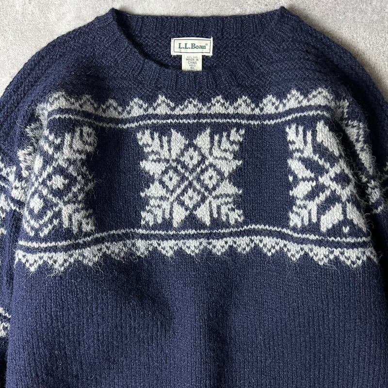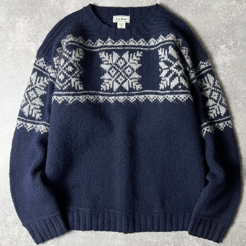 90s LLBean ノルディック 総柄 ウール ニット セーター L / 90年代 オールド エルエルビーン LLビーン ネイビー 紺