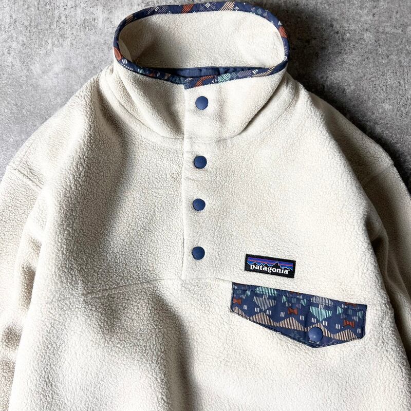 18年製 Patagonia スナップT プルオーバー フリース ジャケット S / パタゴニア ジャンパー ハイネック ナチュラル 幾何学 総柄 レディース
