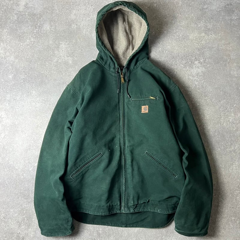 レアカラー 00s Carhartt ボア ライナー ダック シエラ ジャケット XL / 00年代 オールド カーハート フード パーカー スプルース グリーン アクティブ パイル