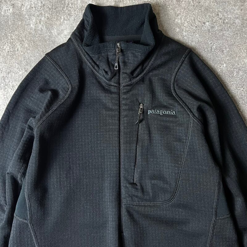 14年製 USA製 Patagonia ハーフジップ R1 プルオーバー M / パタゴニア ジャケット レギュレーター フリース ストレッチ ロンT ブラック 黒
