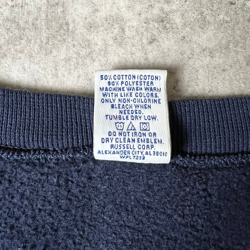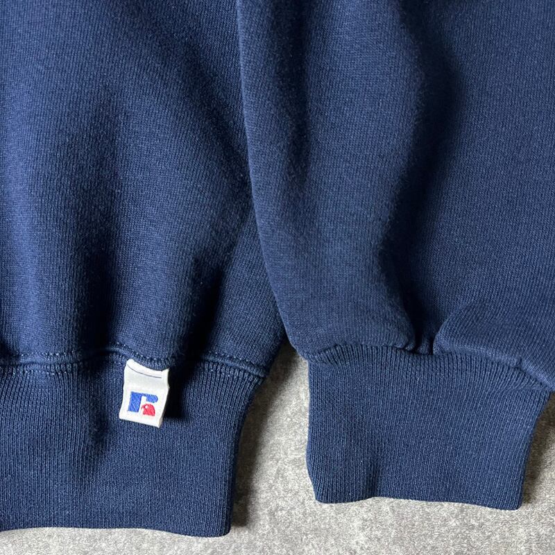 90s RUSSELL ポリス ロゴ プリント 前V スウェット トレーナー XL / 90年代 メキシコ製 オールド ラッセル ネイビー 紺