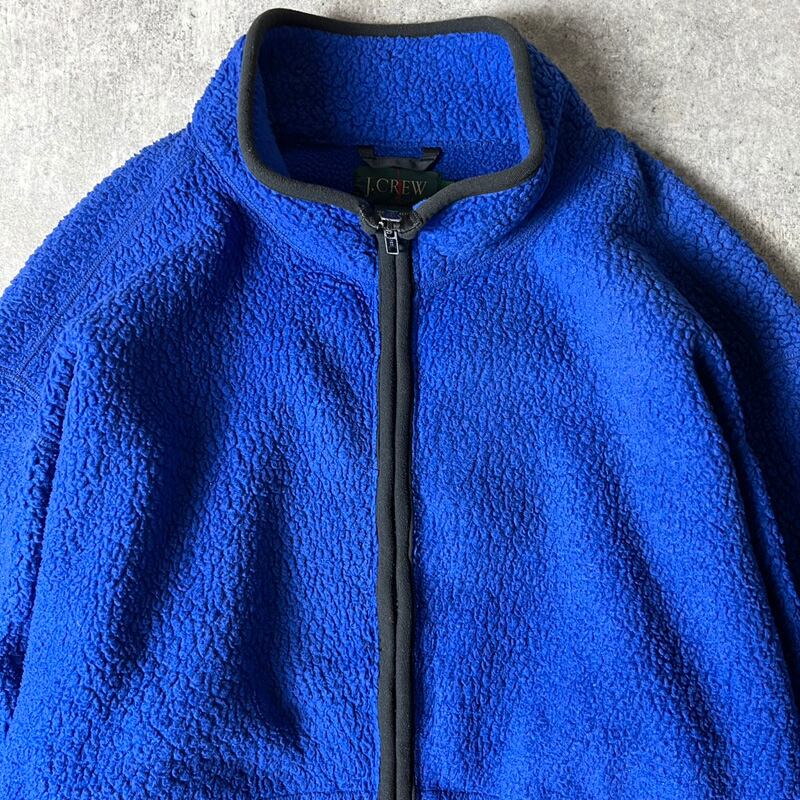 90s 巨人タグ J.CREW フルジップ パイル フリース ジャケット XL / Jクルー 90年代 オールド ハイネック ジャンパー ブルー 青