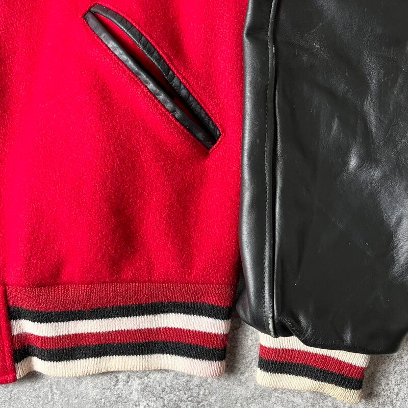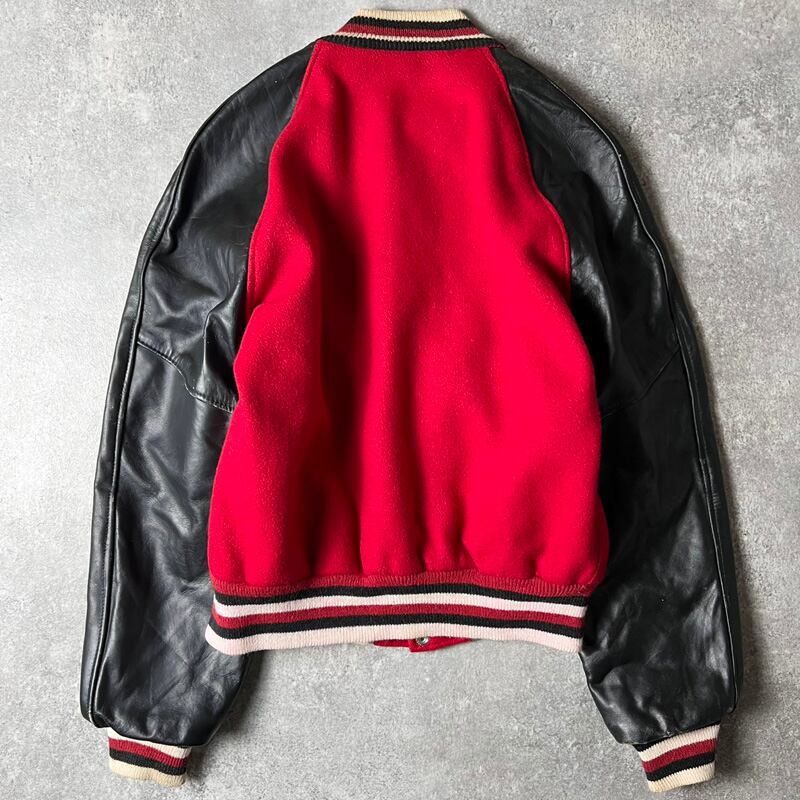 60s Dowdle Sporting Goods レザー 切替 ウール スタジアム ジャンパー / 60年代 ビンテージ スタジャン ジャケット アワード 赤