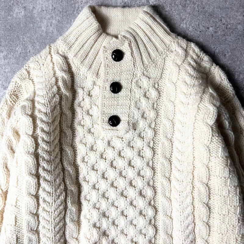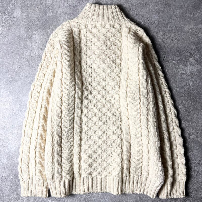 アイルランド製 LLBean ハイネック ウール フィッシャーマン ニット セーター L / エルエルビーン アラン ナチュラル ヘンリ—ネック