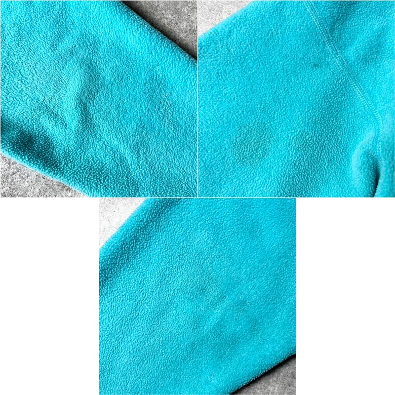 使用感。胸・フロント中央あたり・両袖に軽いフリースロス。