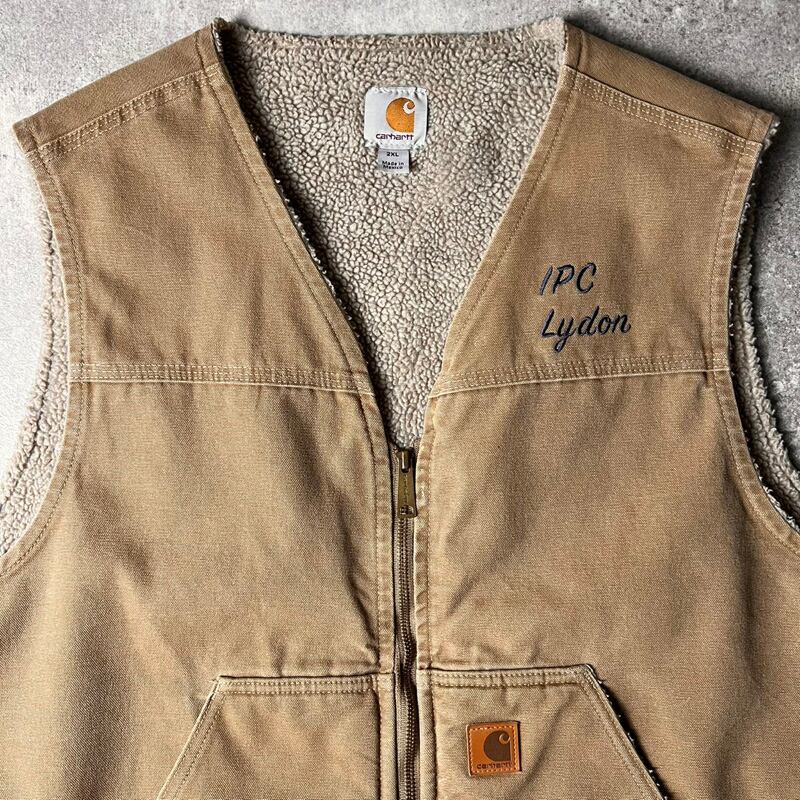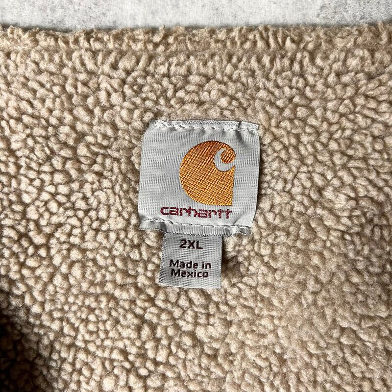 Carhartt 企業 ロゴ 刺繍 ボア ライナー コットン ダック ベスト XXL / カーハート パイル フリース フルジップ ブラウン