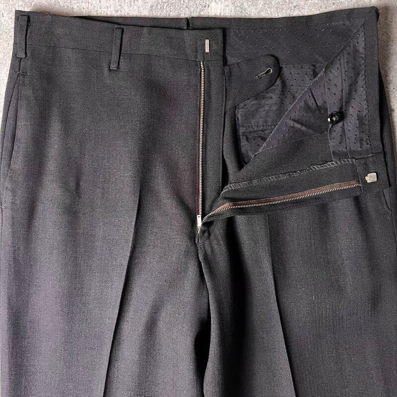 60s UNKNOWN 無地 ノータック ウール スラックス パンツ 33 28 / 60年代 ビンテージ タックなし トラウザー ダーク ブラウン グレー
