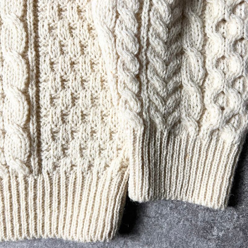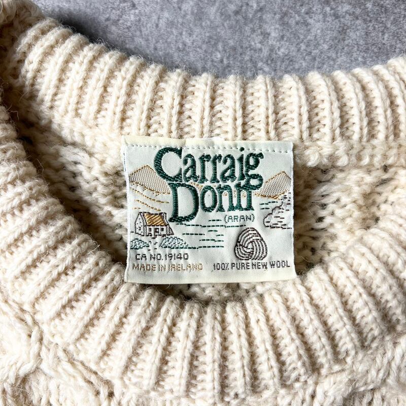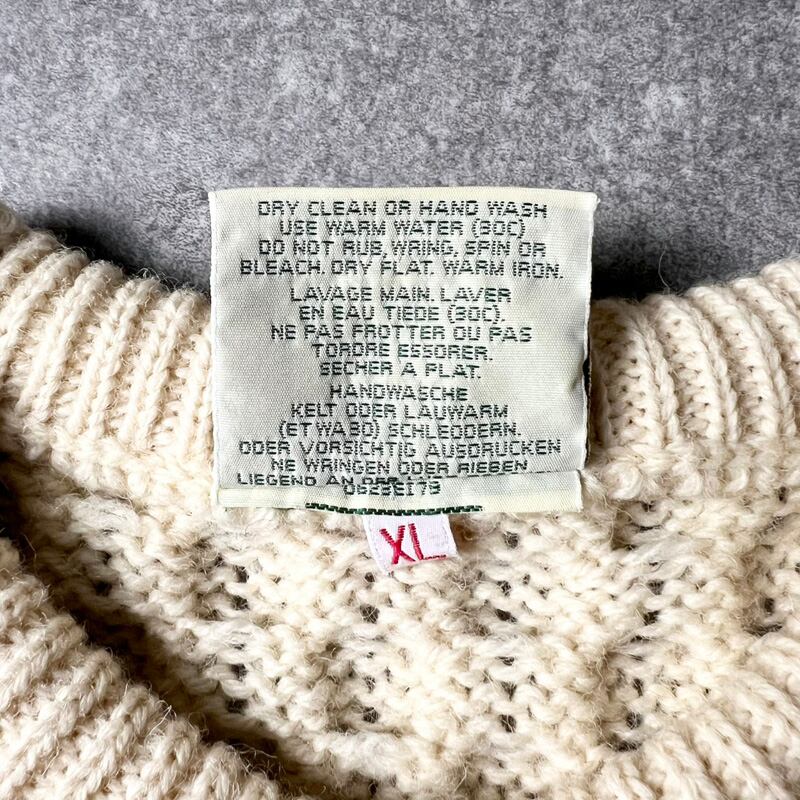 アイルランド製 Carraig Donn ウール フィッシャーマン ニット セーター XL / アラン ナチュラル 生成り 無地 アランセーター