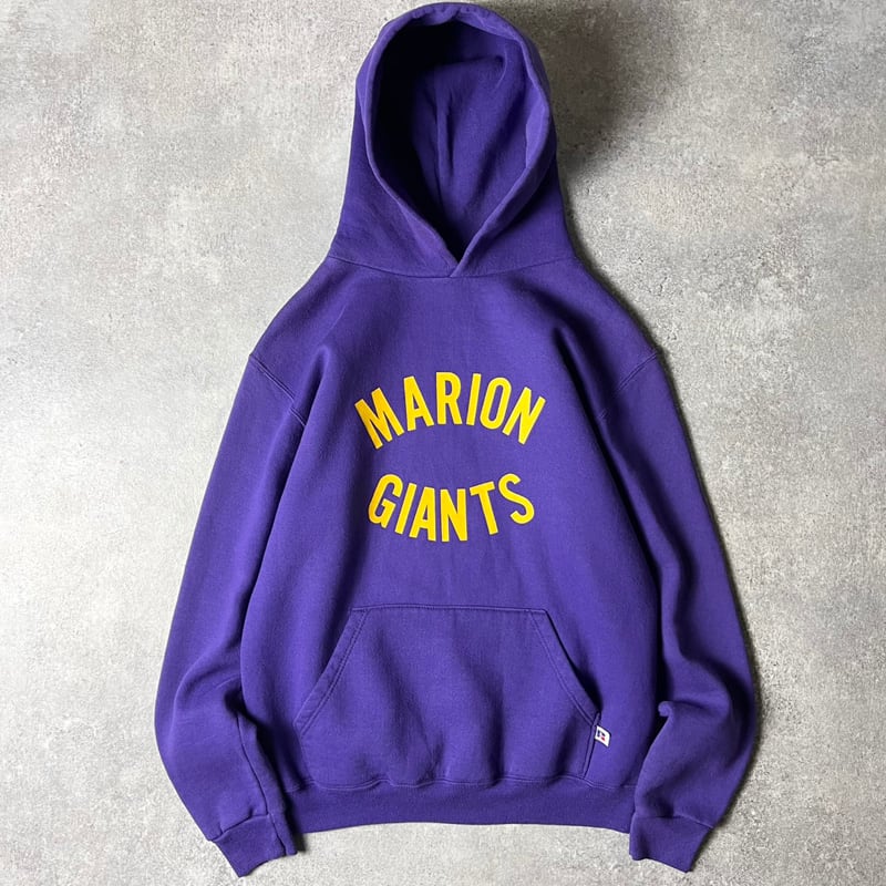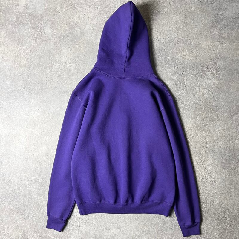 80s USA製 RUSSELL 2段 カレッジ プリント スウェット フード パーカー M / 80年代 アメリカ製 ビンテージ ラッセル トレーナー 紫
