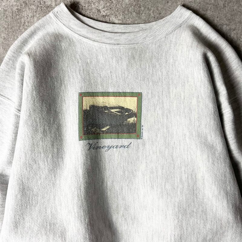 90s トリコタグ Champion フォト スーベニア プリント リバースウィーブ スウェット XL / 90年代 トリコ チャンピオン グレー トレーナー