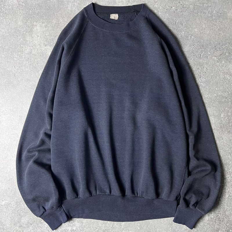 80s Unknown 無地 スウェット トレーナー / 80年代 ビンテージ 霜降り ネイビー 裏起毛 スエット ラグラン