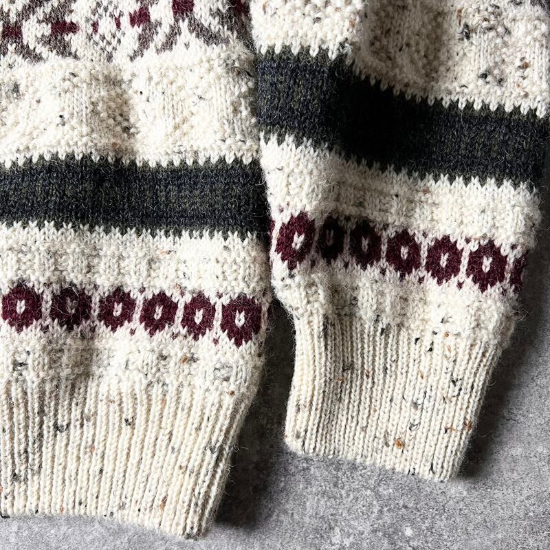 アイルランド製 aran crafts マルチ ボーダー ウール フィッシャーマン ニット セーター L / アランクラフト アラン ナチュラル ネップ