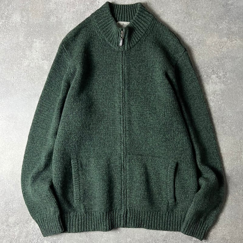 LLBean ラムウール ドライバーズ ニット カーディガン XL / エルエルビーン ハイネック セーター ジャケット グリーン