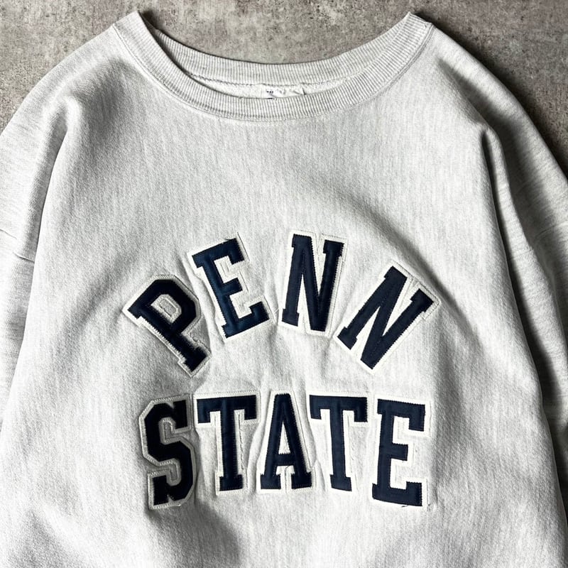90s Champion 2段 カレッジ パッチ 刺繍 リバースウィーブ スウェット トレーナー / 90年代 オールド チャンピオン 霜降り グレー