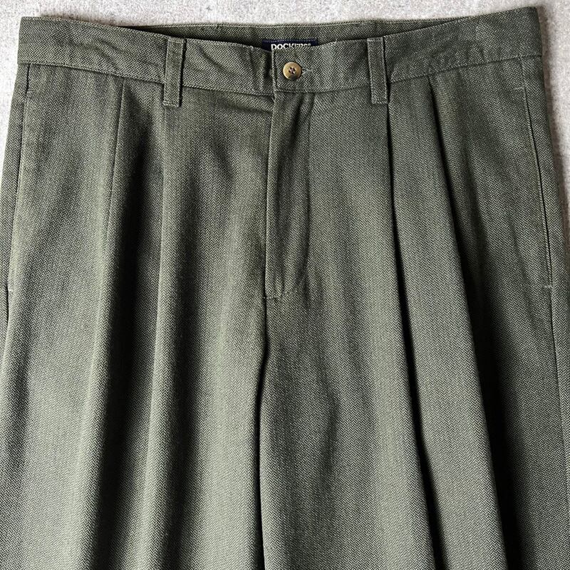 90s DOCKERS 2タック コットン ヘリンボーン ツイル チノ パンツ 34 30 / 90年代 オールド ドッカーズ リーバイス Levis チノパン オリーブ