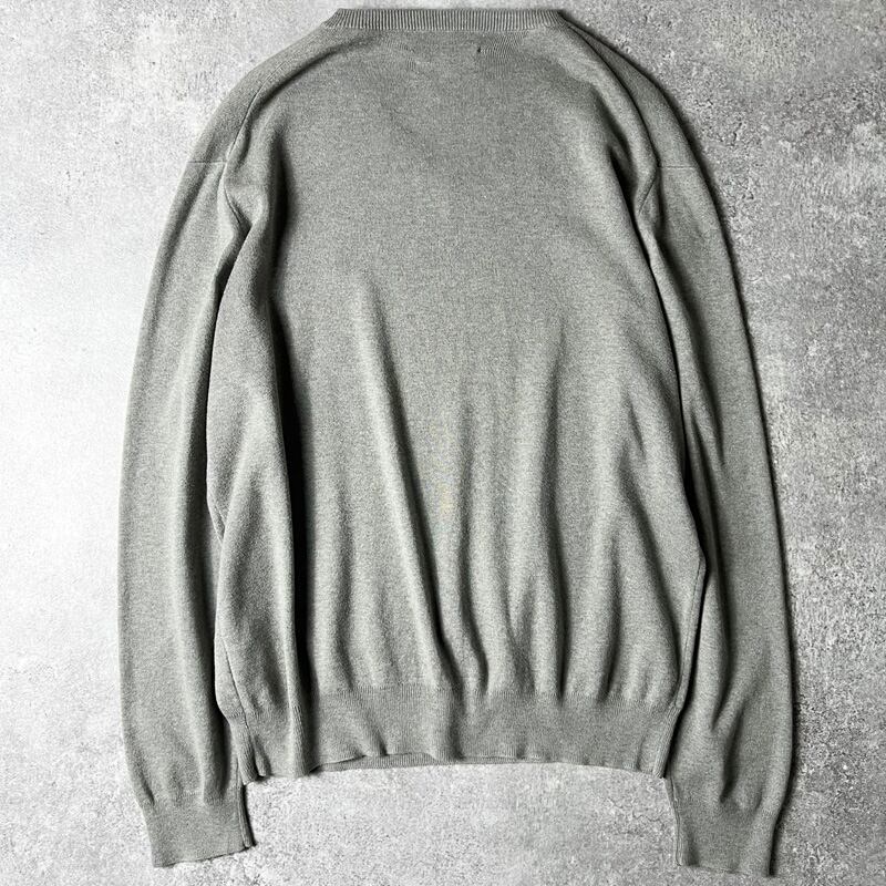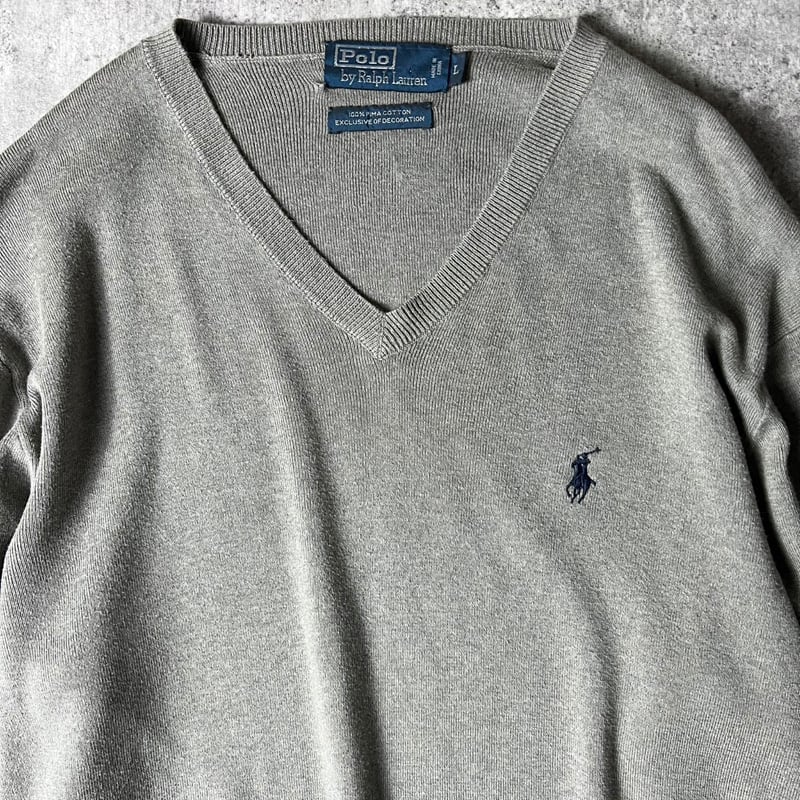 90s POLO RALPH LAUREN Vネック ピマ コットン ニット セーター L / 90年代 オールド ポロ ラルフローレン ポニー刺繍 グレー