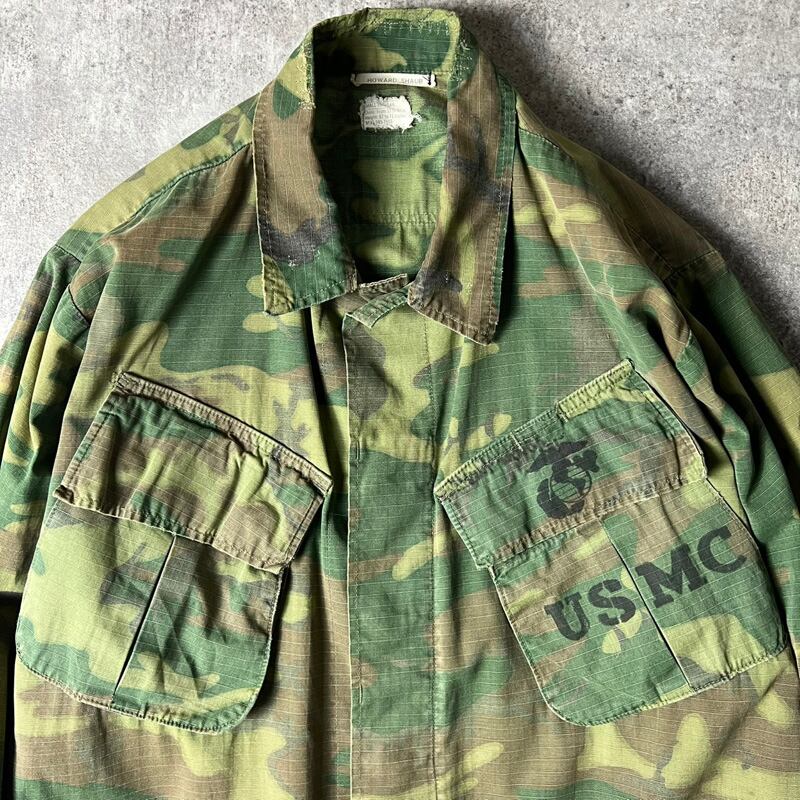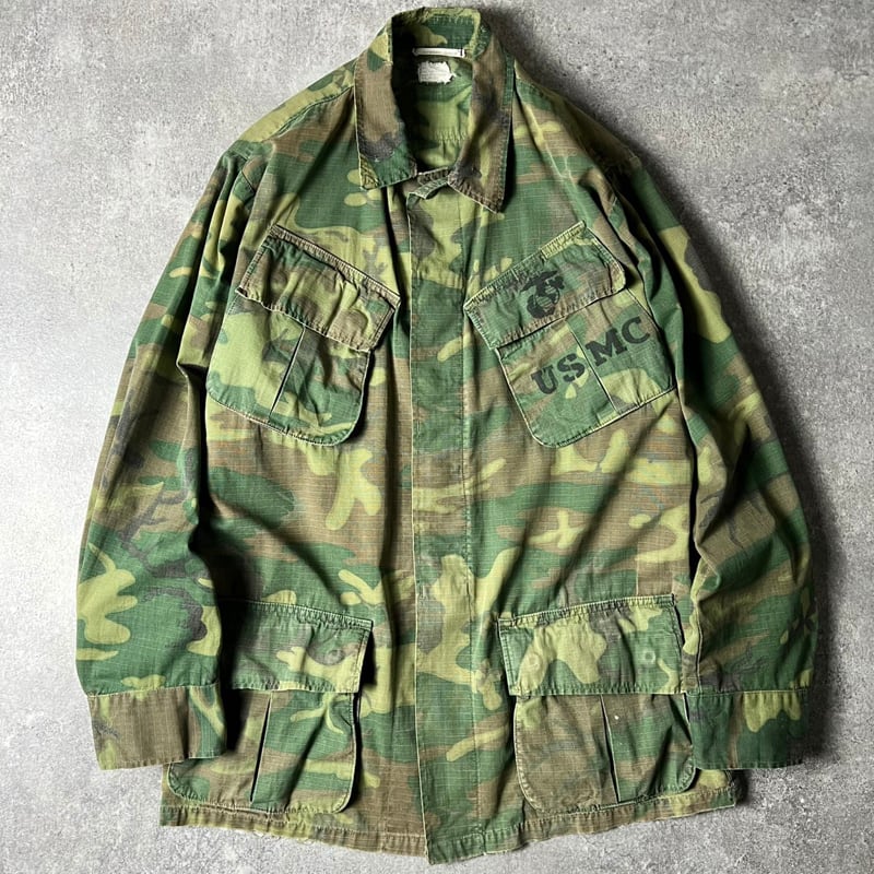 60s US ARMY 米軍実物 4th ERDL グリーンリーフ カモ ジャングルファティーグ ジャケット S-R / 60年代 ビンテージ ミリタリー USMC ステンシル