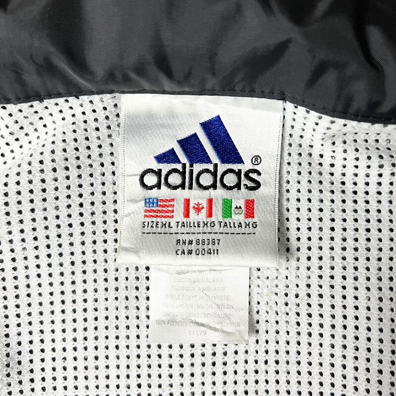90s adidas 収納 フード付き フルジップ ナイロン ジャケット XL / 90年代 オールド アディダス パフォーマンス ロゴ 3ストライプ 黒