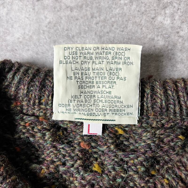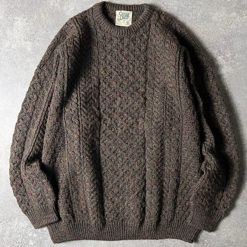 アイルランド製 Carraig Donn ウール フィッシャーマン ニット セーター L / アラン ブラウン ミックス 無地 アランセーター