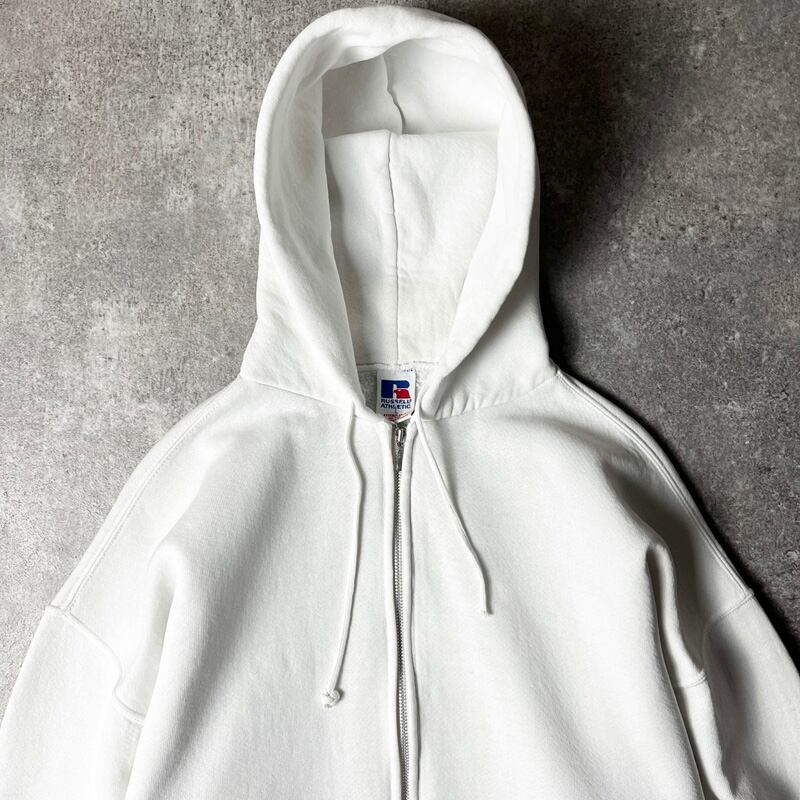 90s RUSSELL フルジップ 無地 スウェット フード パーカー L / 90年代 オールド ラッセル トレーナー スエット ホワイト 白