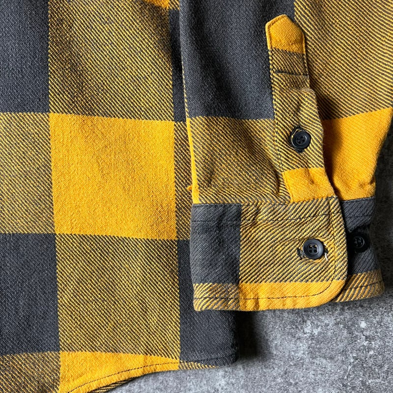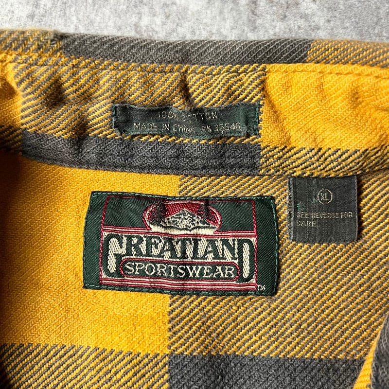 90s GREATLAND ブロック チェック 長袖 ヘビー フランネル シャツ XL / 90年代 オールド ネルシャツ イエロー ブラック