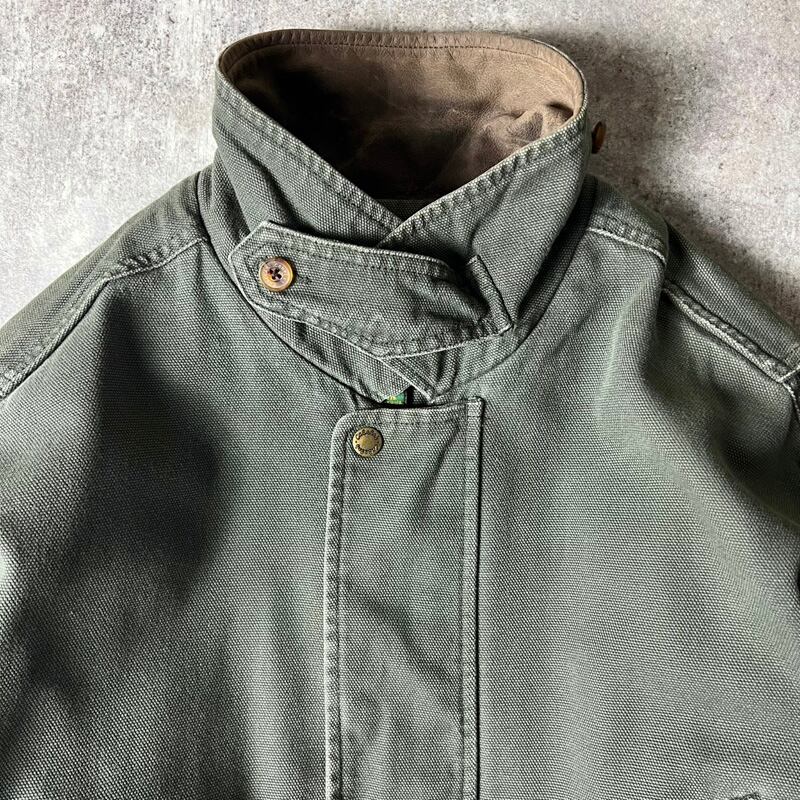 90s Cabela's 襟 レザー 切替 ハンティング ジャケット L / 90年代 オールド カベラス ジャンパー カーキ オリーブ グリーン