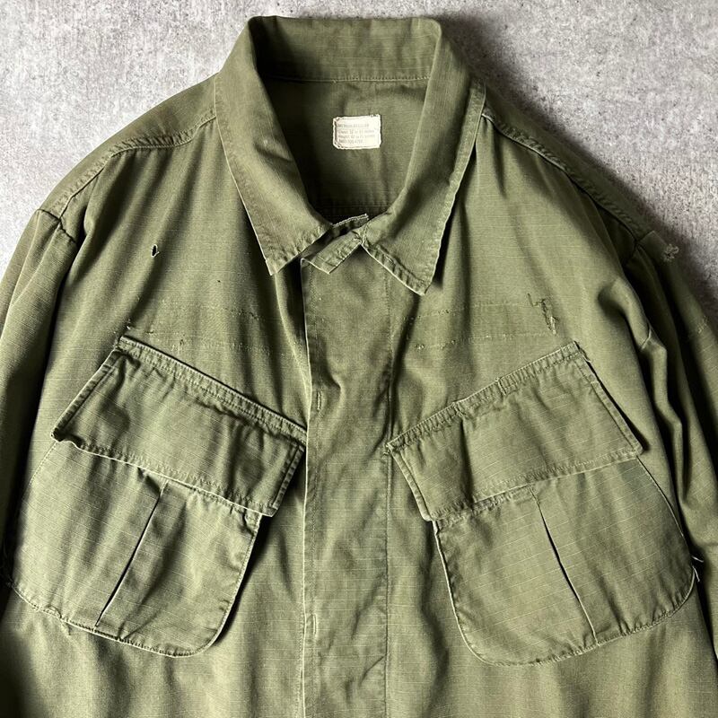 雰囲気系 70s 70年製 US ARMY 米軍実物 4th ジャングルファティーグ ジャケット M-R / 70年代 ビンテージ ミリタリー リップストップ オリーブ