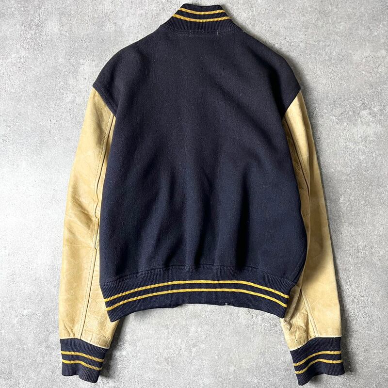 50s 60s LOWE&CAMPBELL レザー 切替 ウール スタジアム ジャンパー / 50年代 60年代 ビンテージ スタジャン ジャケット アワード 紺