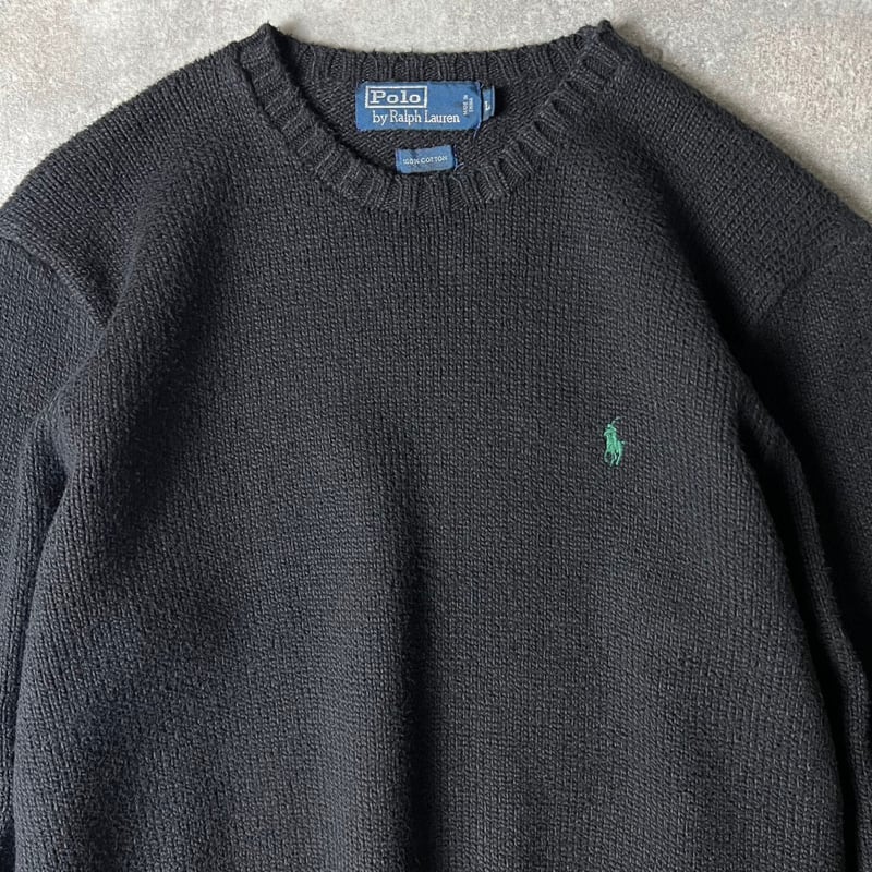 90s POLO RALPH LAUREN コットン ニット セーター L / 90年代 オールド ポロ ラルフローレン ポニー刺繍 ブラック 黒