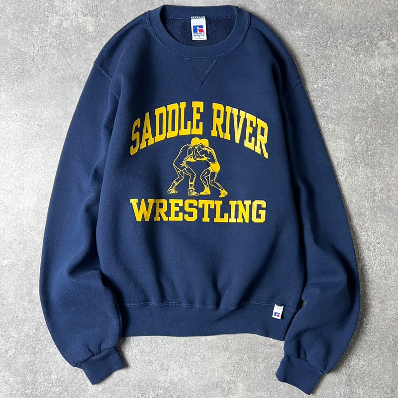 90s RUSSELL 3段 カレッジ プリント スウェット トレーナー S / 90年代 メキシコ製 オールド ラッセル ネイビー 紺