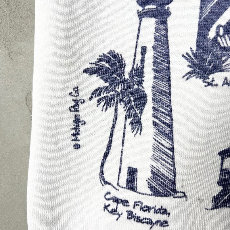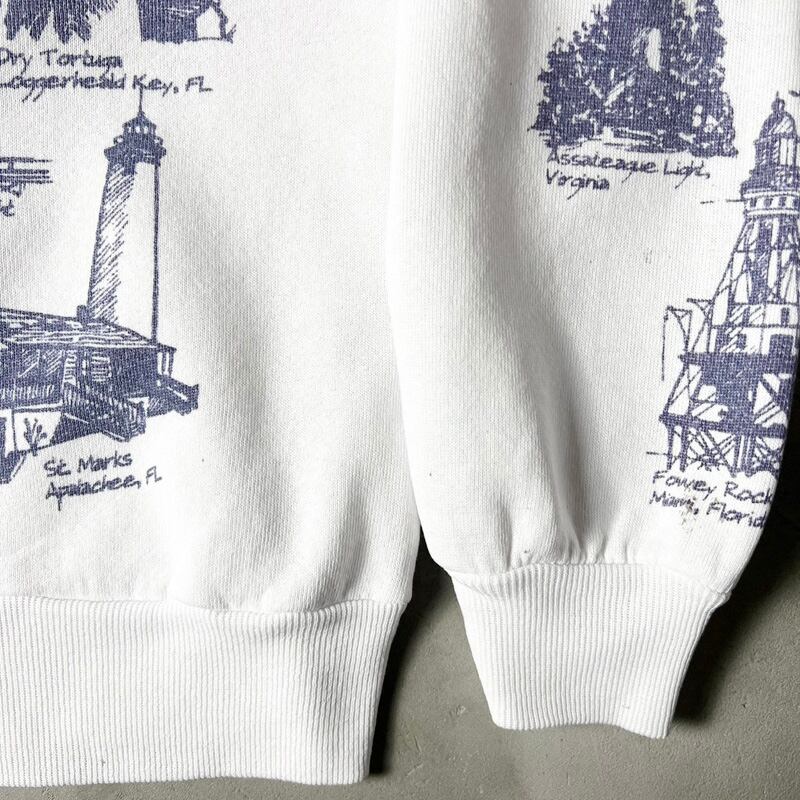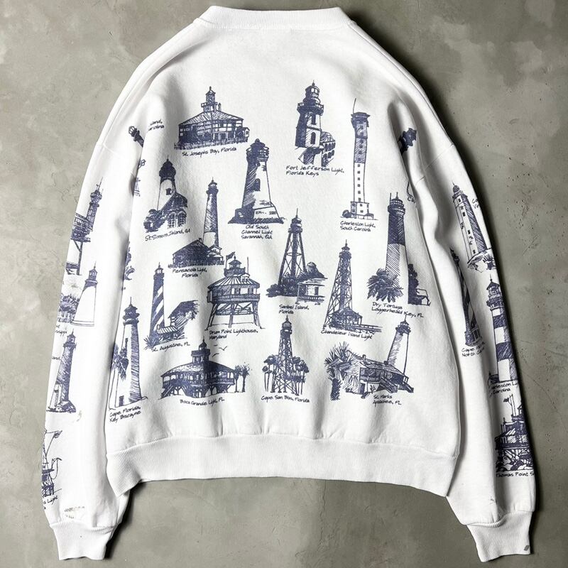 90s USA製 MICHIGAN RAG 灯台 総柄 プリント スウェット トレーナー L / 90年代 アメリカ製 オールド ミシガンラグ ホワイト 白
