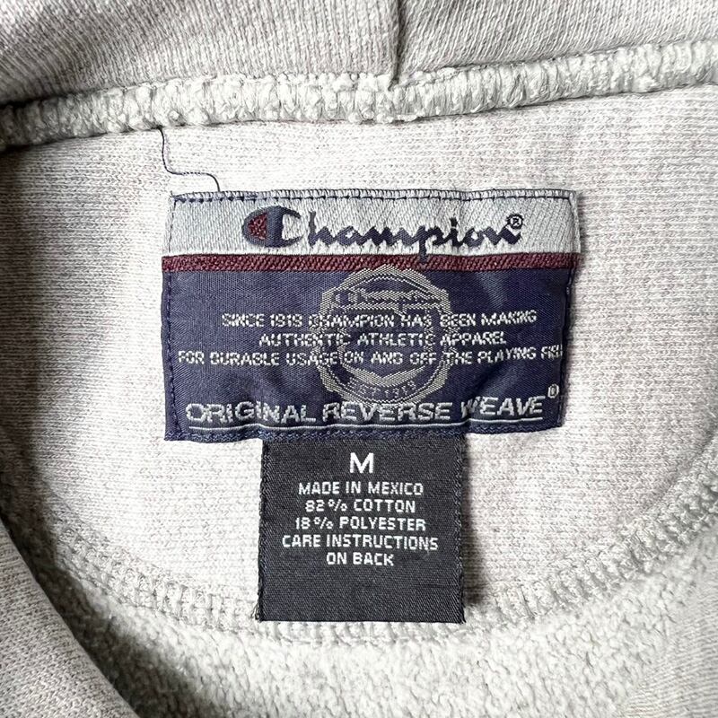 00s Champion カレッジ プリント オリジナル リバースウィーブ スウェット フード パーカー M / 00年代 オールド チャンピオン グレー
