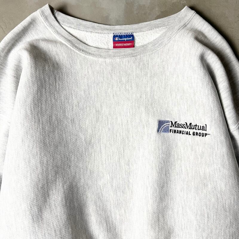 00s Champion 企業 ロゴ 刺繍 リバースウィーブ スウェット トレーナー XL / 00年代 オールド チャンピオン 霜降り グレー 企業物