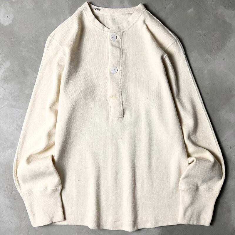 50s US ARMY 米軍実物 M-1950 ヘンリーネック アンダーウェア / 50年代 ビンテージ ミリタリー 無地 サーマル Tシャツ 長袖 ロンT