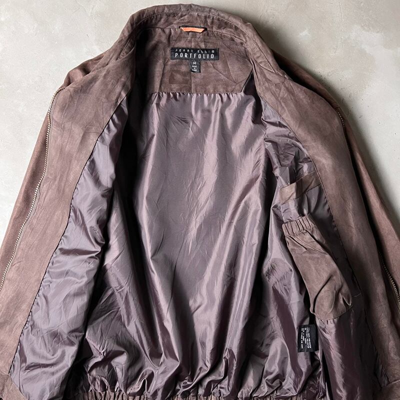 90s PERRY ELLIS スエード調 スイングトップ ジャケット M / 90年代 オールド ペリーエリス ジャンパー ナイロン ライナー付き