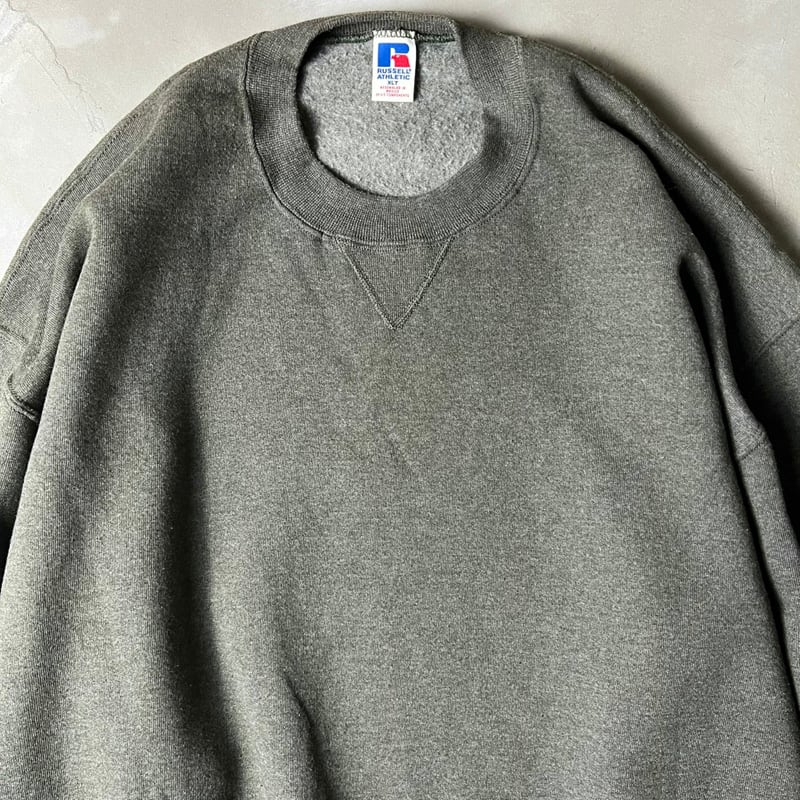 90s RUSSELL 無地 前V スウェット トレーナー XL / 90年代 メキシコ製 オールド ラッセル オリーブ グリーン スエット