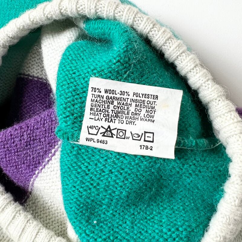 80s USA製 ROBERT BRUCE ワイド ボーダー ウール ニット セーター M / 80年代 アメリカ製 ビンテージ マルチカラー