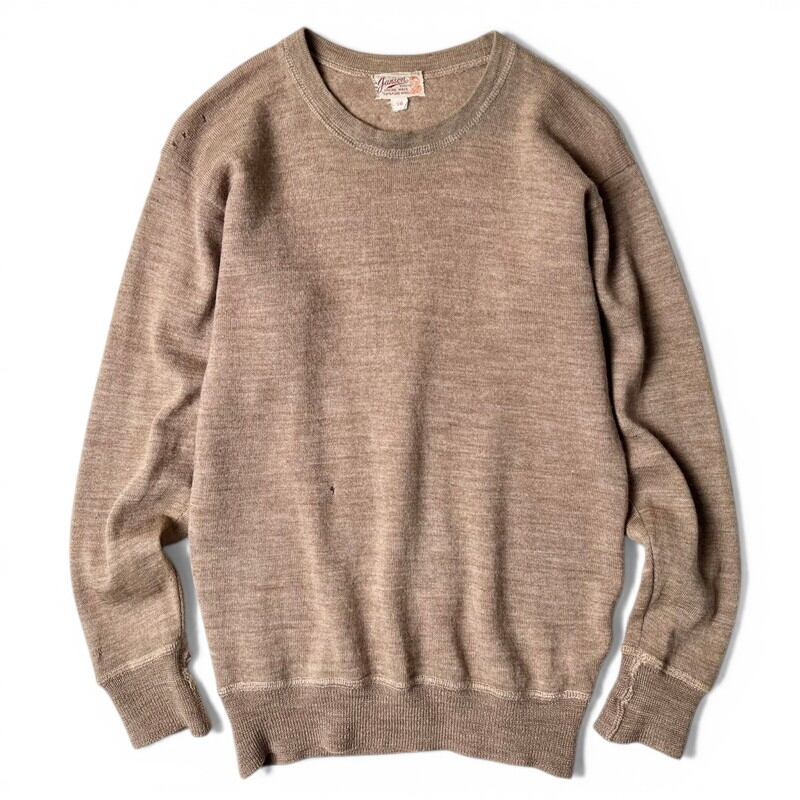雰囲気系 50s Janson ウール リブ編み 長袖 Tシャツ アンダーウェア 36 / 50年代 ビンテージ 無地 ロンT サーマル 襤褸