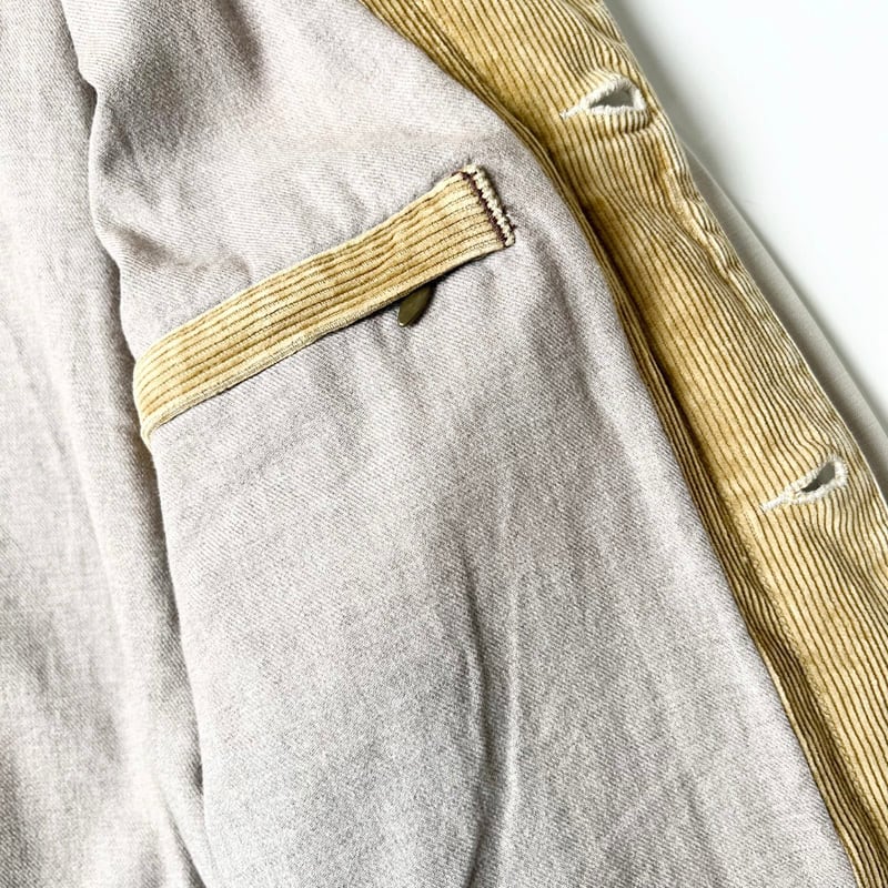 襟裏や袖先内側・前立て内側はコーデュロイの切替デザイン