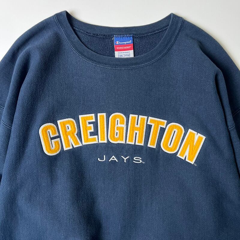 00s Champion カレッジ パッチ 刺繍 リバースウィーブ スウェット トレーナー XXL / 00年代 メキシコ製 オールド チャンピオン ネイビー