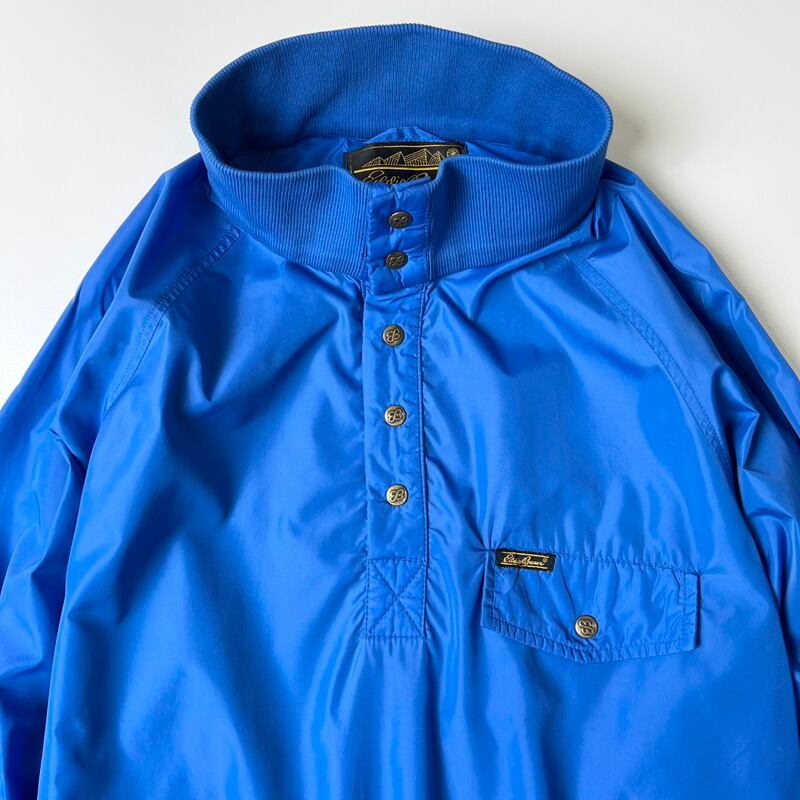 80s 黒タグ Eddie Bauer ハイネック プルオーバー ナイロン ジャケット S / 80年代 ビンテージ エディーバウアー スナップT ブルー
