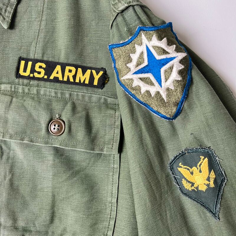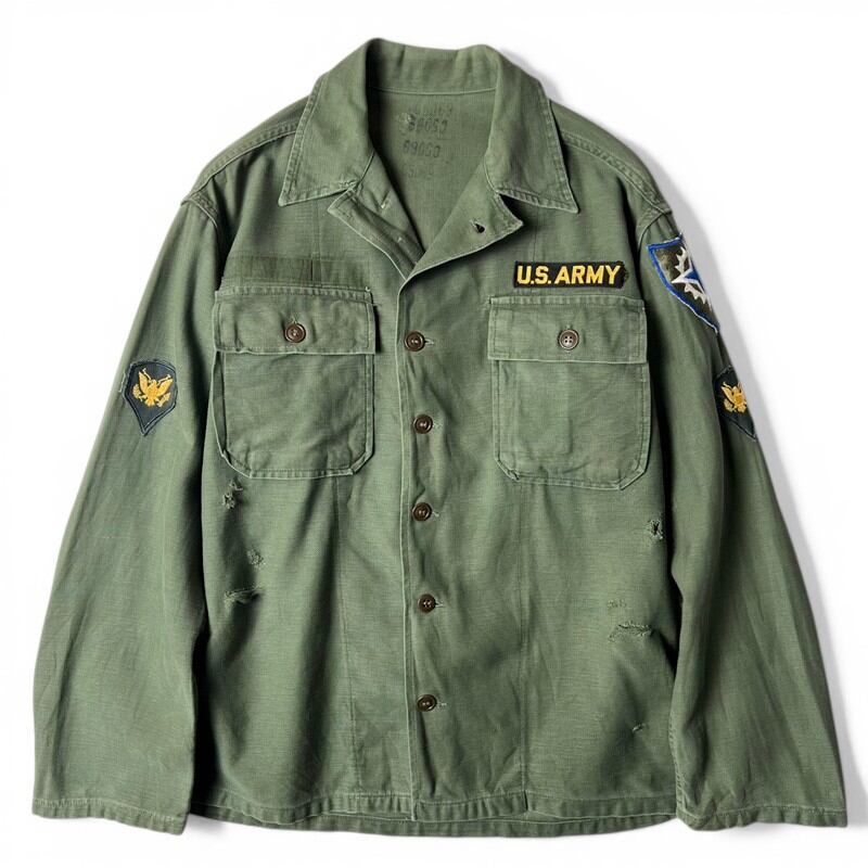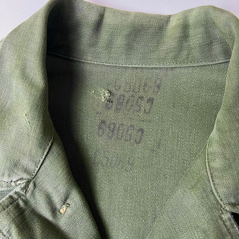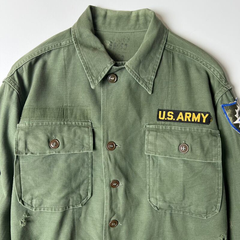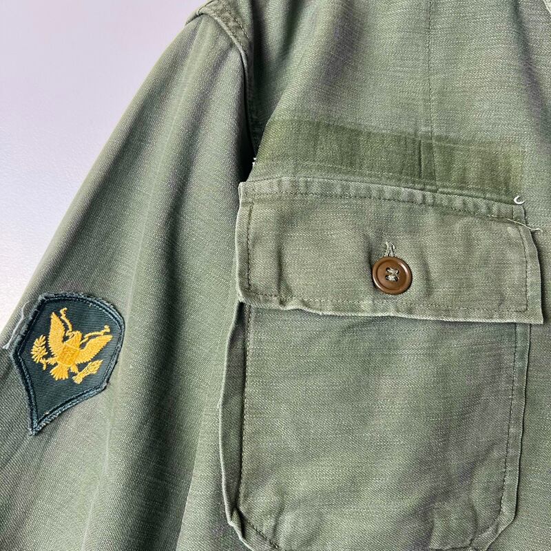 雰囲気系 50s US ARMY 米軍実物 OG-107 コットン サテン ユーティリティ シャツ 1st 筒袖 初期 / 50年代 ビンテージ ミリタリー ジャケット
